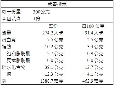 過敏原訊息:本產品含有麩質之穀物、大豆、芝麻及其製品,不適合其過敏體質者食用。